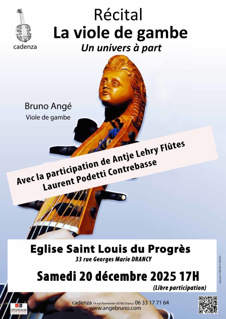 Samedi 20 décembre 2025 17h Eglise Saint Louis du Progrès Drancy RERB DRANCY concert « La viole de gambe, un univers à part » avec Antje Lehry Laurent Podetti PAF